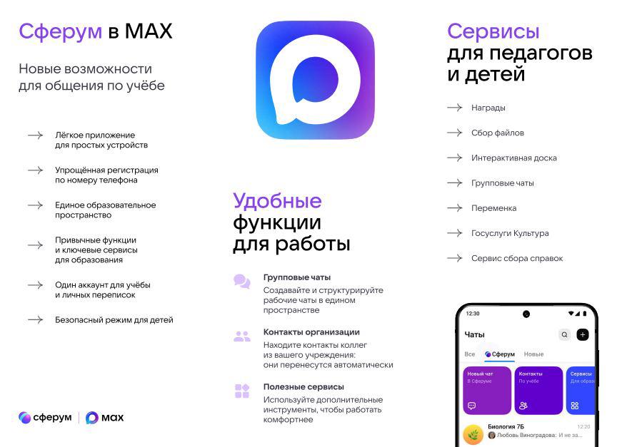 Уважаемые гости сайта! С 6 октября 2025 года запланирован перенос коммуникаций образовательных организаций и организаций дополнительного образования детей, расположенных на территории Свердловской области, Ссылка на официальный сайт Сферума в Национальном мессенджере: https://www.sferum.ru/ Библиотека полезных материалов: https://prof.sferum.ru/start_docs Справочный центр Сферум: https://www.sferum.ru/spravka Поддержка: https://max.ru/sferum_help Бот Сферум: https://max.ru/sferum_bot Брошура_Sferum_v_MAX.pdf(Скачать) |